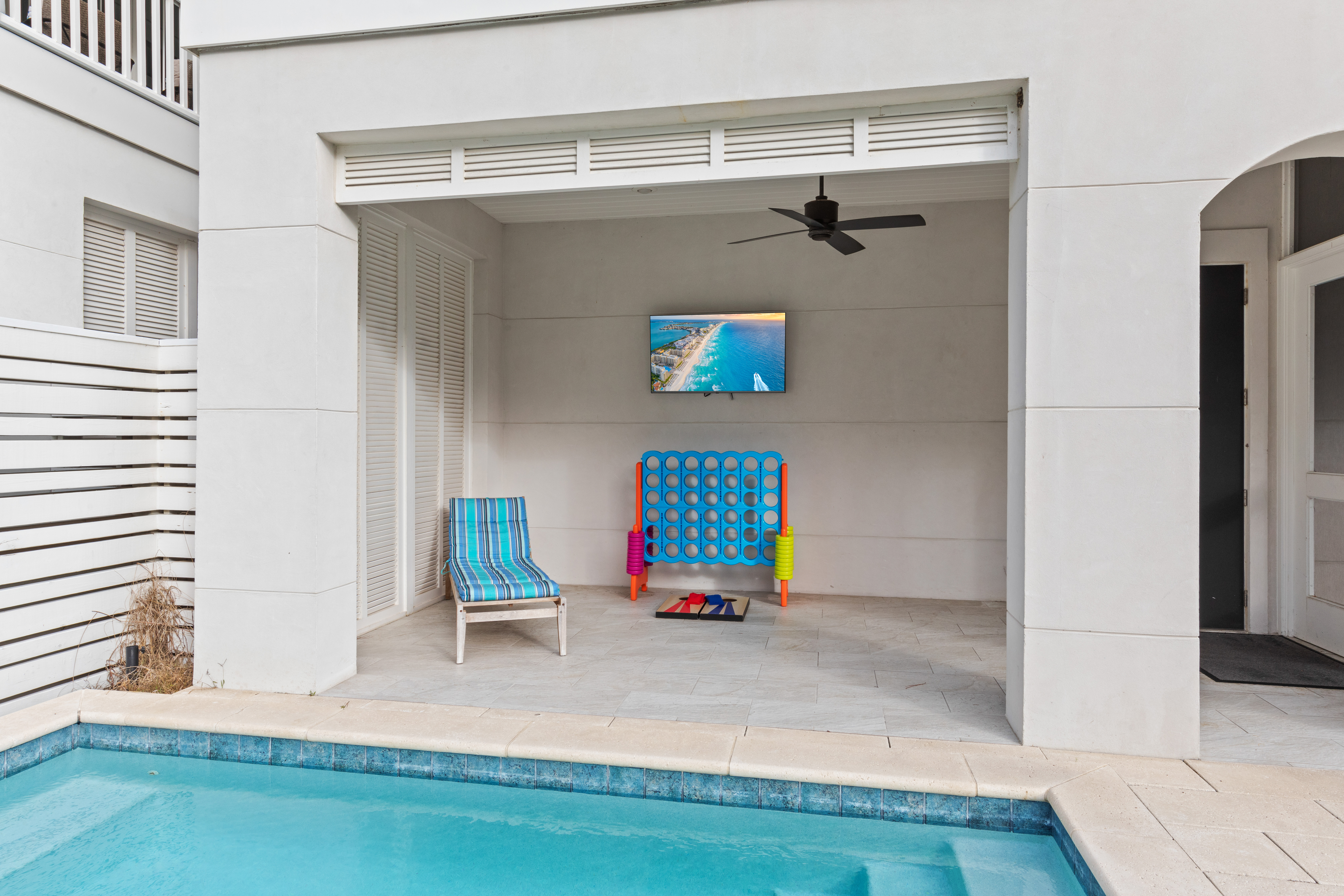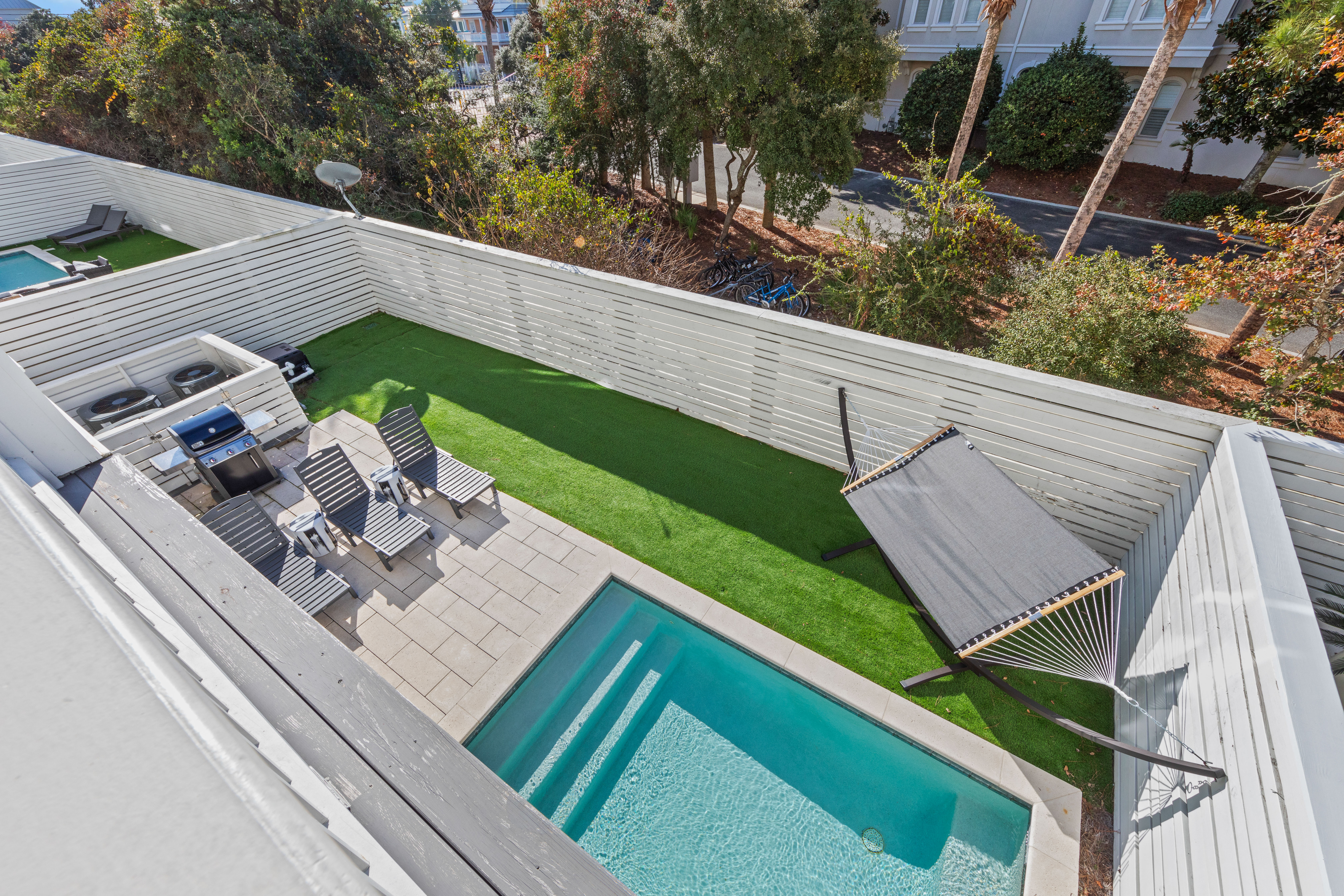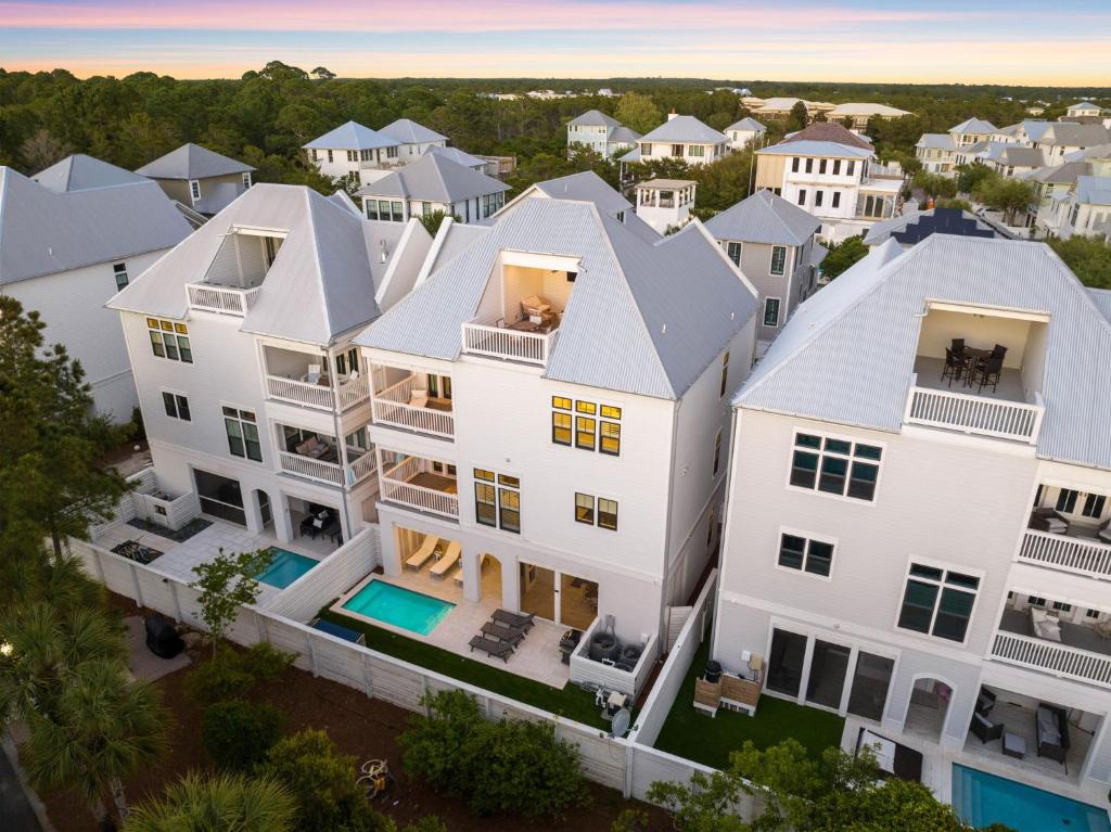 Guests can enjoy a private saltwater plunge pool, multiple balconies and screened-in porches, and a complimentary 6-seater LSV for easy travel along 30A.