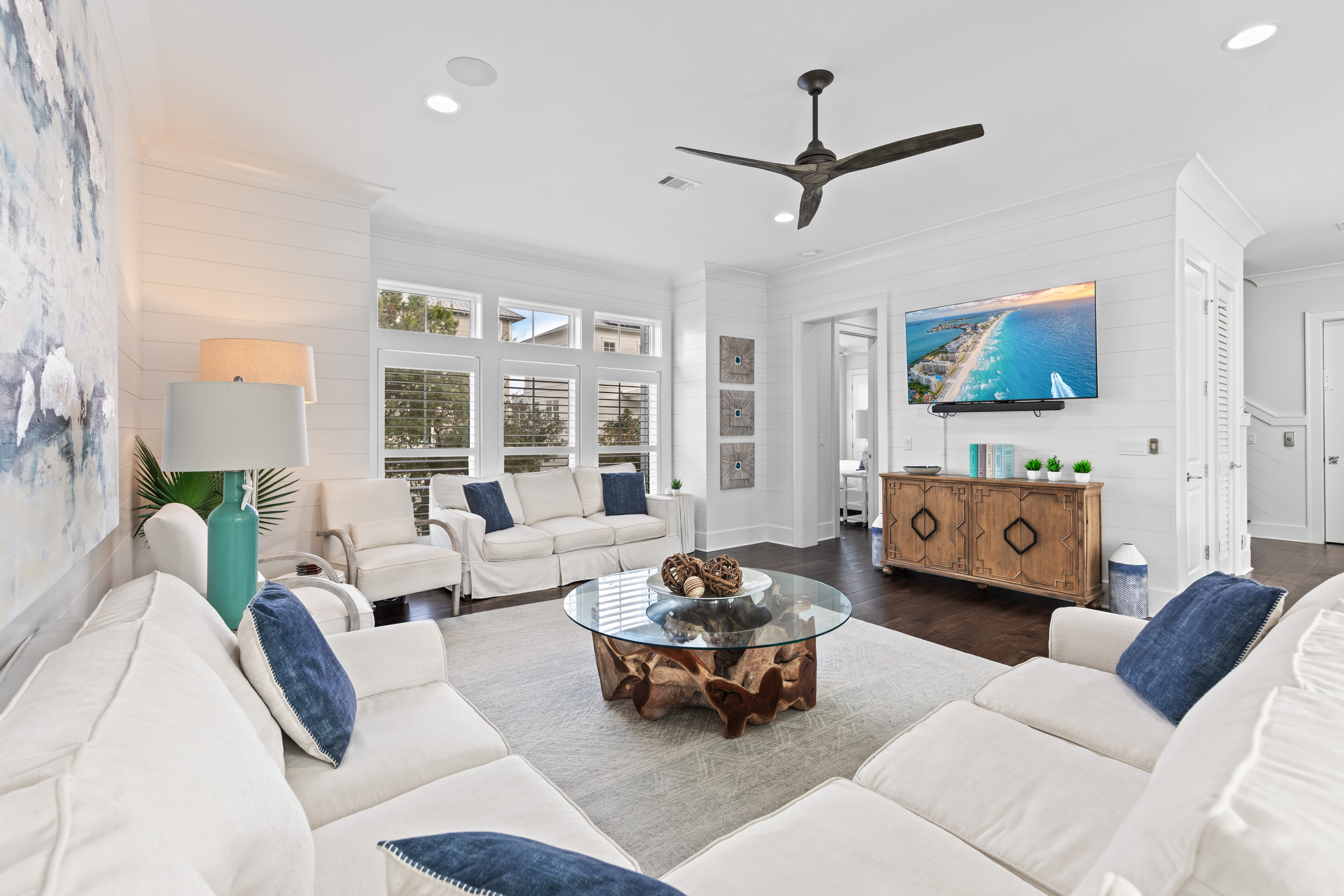 Long to Sea is a beautifully designed 4-bedroom, 4 full-bath, 2 half-bath luxury home that comfortably sleeps up to 16 guests. Filled with natural light and styled with clean, modern coastal décor, the home blends relaxation, comfort, and classic 30A charm.